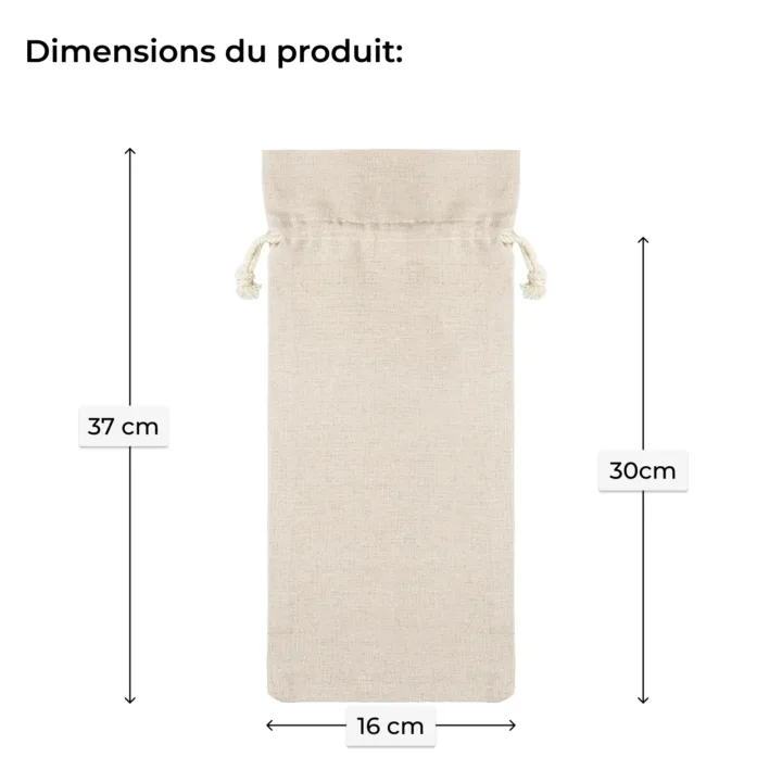Nos sacs en lin de 16 x 37 cm sont un excellent choix pour un emballage élégant de bouteilles de vin ou d'alcool. Grâce à leur aspect naturel et à la possibilité de personnalisation, ils sont parfaits pour des cadeaux de Noël qui feront certainement impression sur le destinataire. Ces emballages non seulement mettent en valeur l'aspect écologique de votre marque, mais ajoutent également du prestige et de la classe à chaque cadeau. Parfait pour les cadeaux d'entreprise ou les cadeaux personnels, nos sacs en lin avec impression rendront vos cadeaux uniques et mémorables.