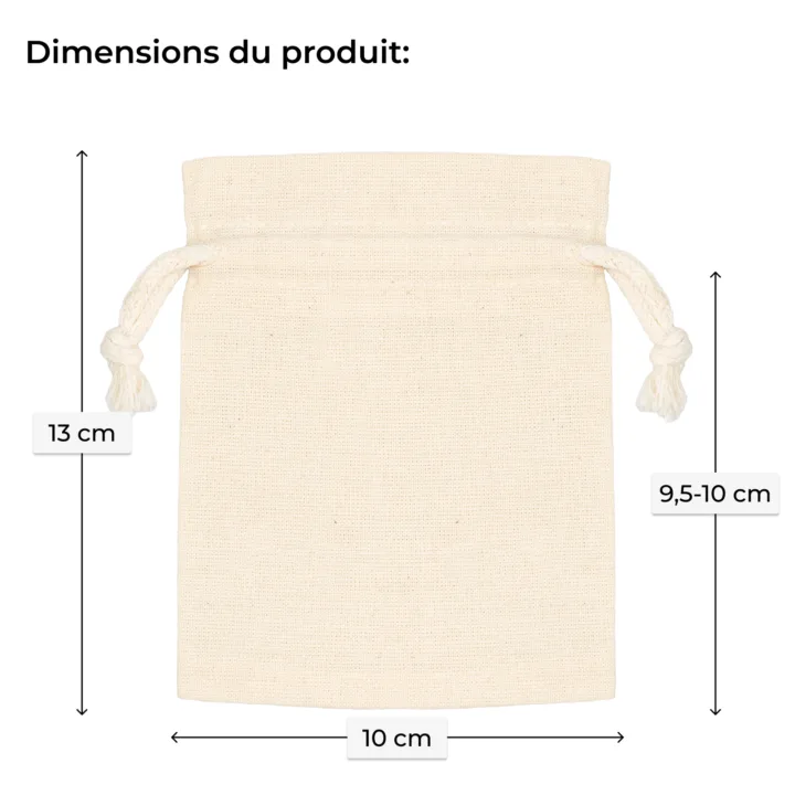 Ces pochettes seront un merveilleux emballage pour cadeaux mais ils serviront également d'emballages pour les cosmétiques, bijoux ou bougies. Les sachets en coton sont aussi souvent utilisés par des entreprises qui cherchent des emballages originaux pour les cadeaux d'affaires.