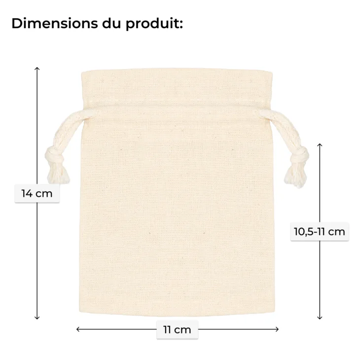 Ces pochettes seront un merveilleux emballage pour cadeaux mais ils serviront également d'emballages pour les cosmétiques, bijoux ou bougies. Les sachets en coton sont aussi souvent utilisés par des entreprises qui cherchent des emballages originaux pour les cadeaux d'affaires.