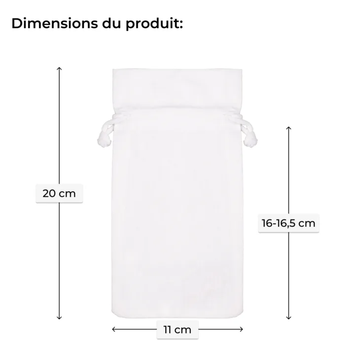 10 pièces Pochettes en coton 11 x 20 cm - blanc