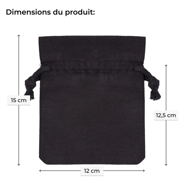 Ensemble de 10 pièces de pochetes d'un tissu naturel comme coton en taille 12 x 15 cm, dont la couleur noir conviendra à presque chaque situation. Le lot que nous proposons est universel puisqu'il permet d'utiliser les sachets de nombreuses manières- selon la situation.