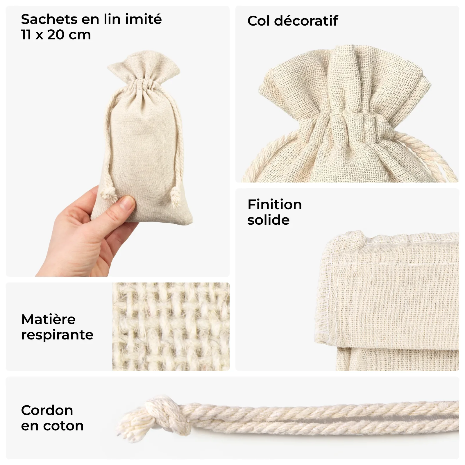 10 pièces Sachets en lin imité 11 x 20 cm - naturelle
