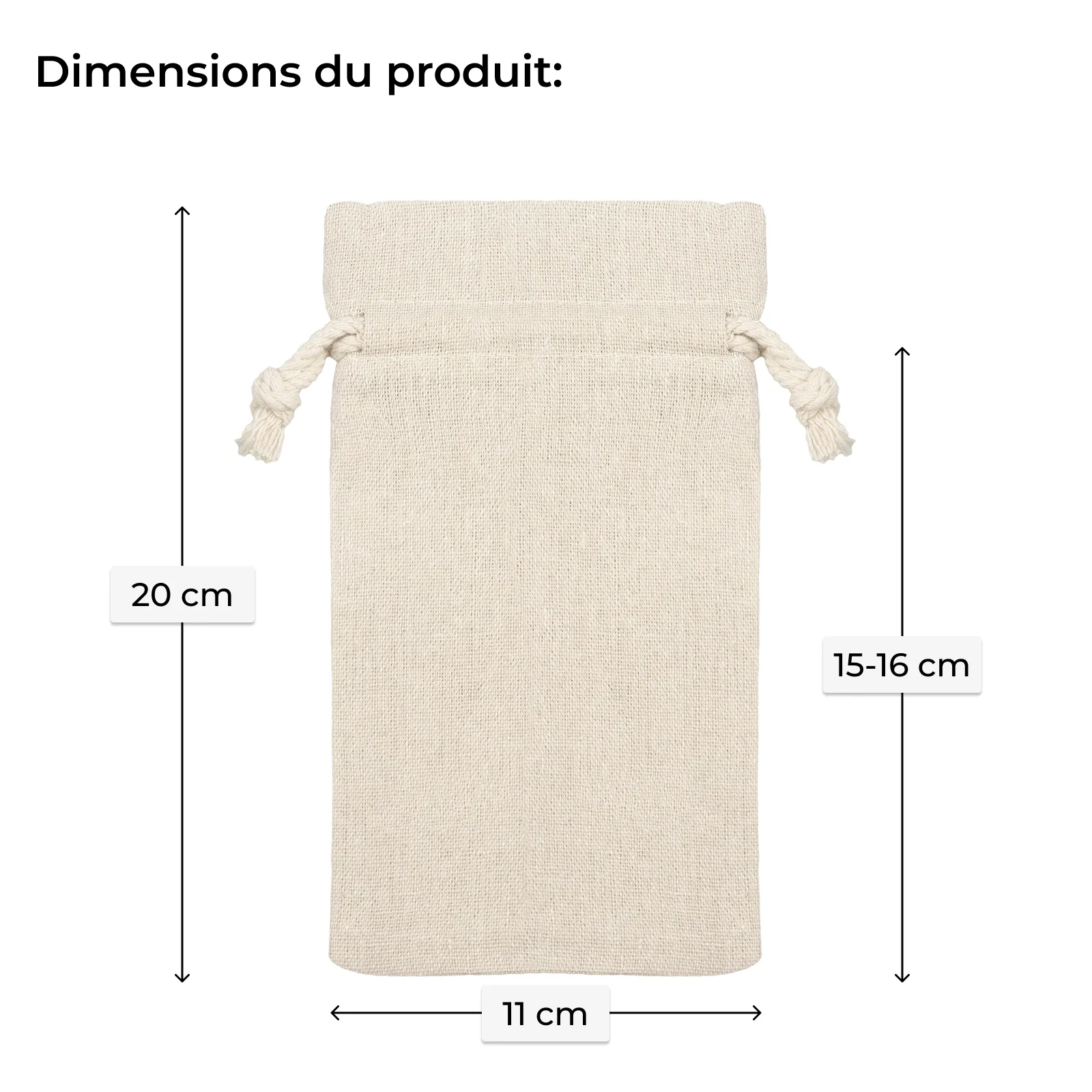Découvrez les pochettes en tissu résistants et pratiques couleur lin naturel. Les pochettes présentées dans cette offre ont la taille de 11 x 20 cm. L'emballage comprend un set de 10 pièces de sachets universels.
