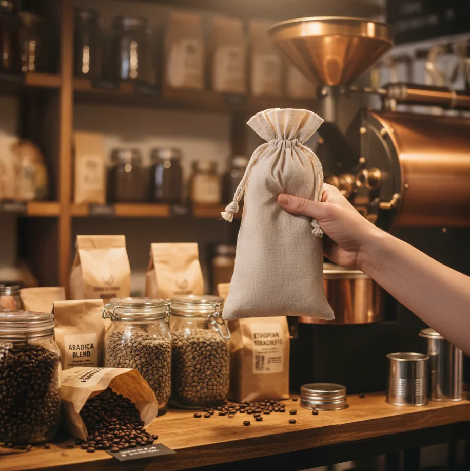 Les pochettes en tissu de couleur lin naturel seront parfaites comme les emballages de produits et les pochettes pour gadgets publicitaires (nous offrons la possibilité de les personnaliser). Cela vaut également la peine de les utiliser comme emballage cadeau original et élément de décoration dans un style rustique et boho. Nos clients les utilisent, entre autres comme emballage pour l'artisanat, pour la lavande, pour les bougies et pour les cires parfumées. Vous aussi, vous pouvez emballer vos idées dans nos sacs !