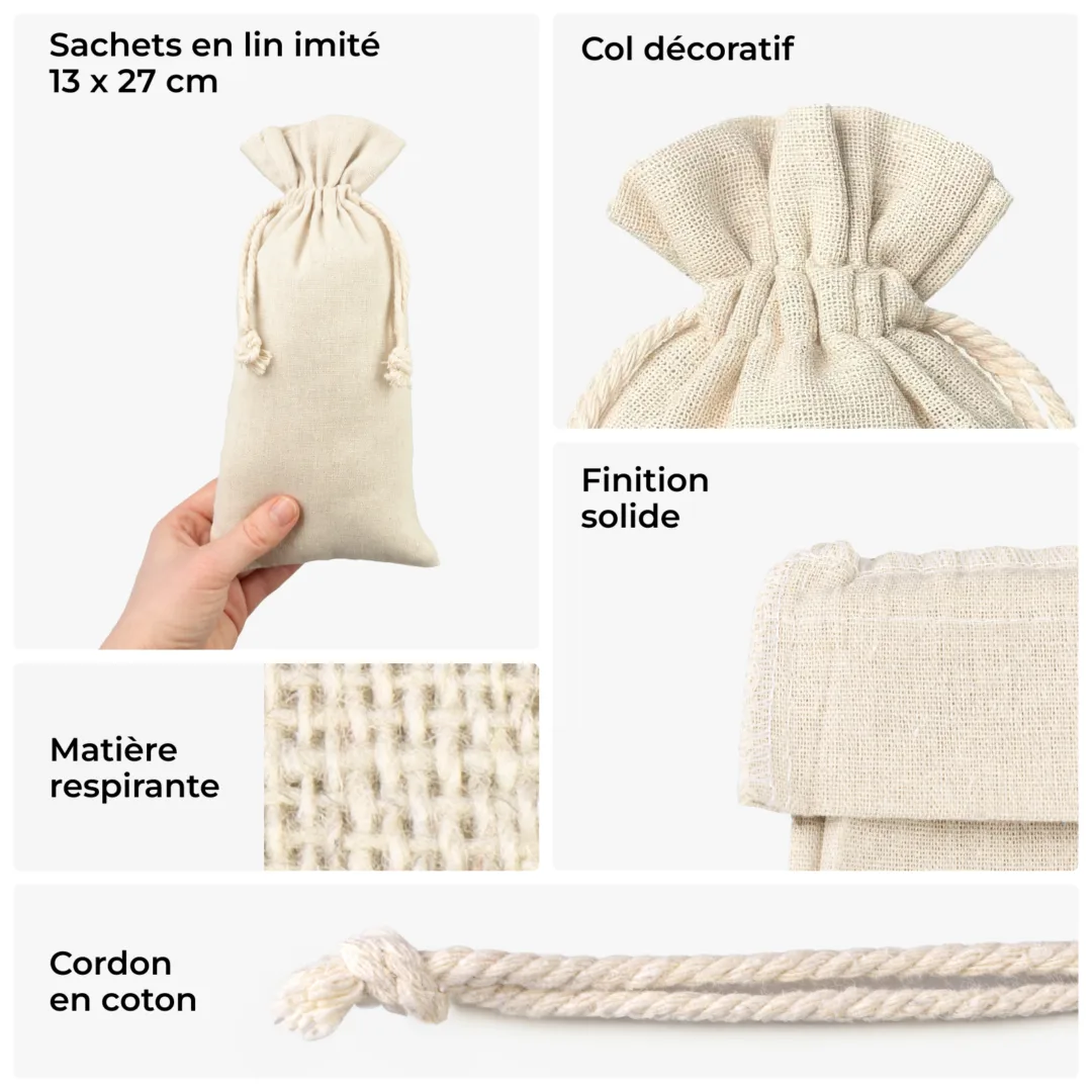 10 pièces Sachets en lin imité 13 x 27 cm - naturelle