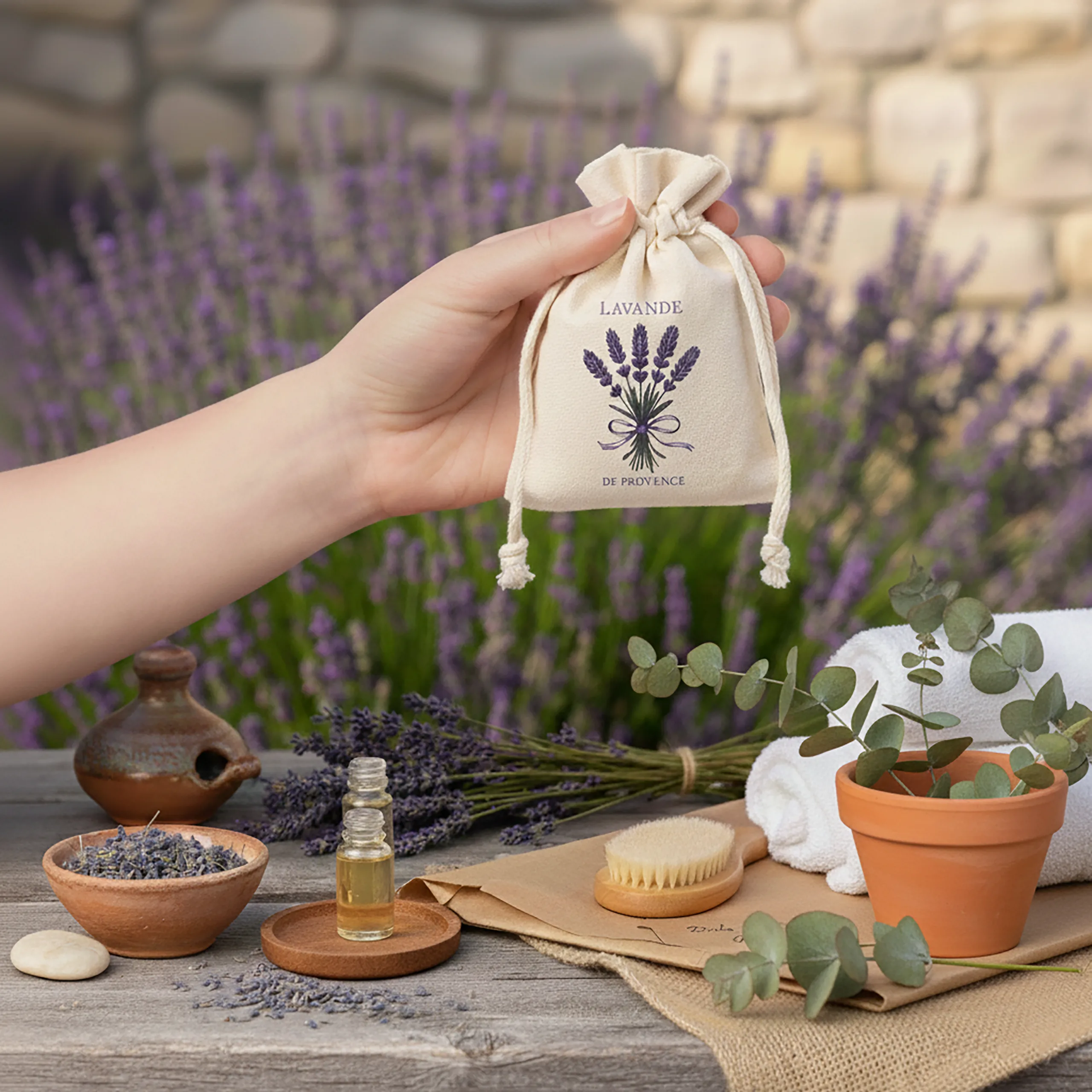 - des pochettes réutilisables que vos clients peuvent conserver à la maison pour la lavande, de petits objets ou des sachets parfumés, créant des associations positives avec votre marque.
