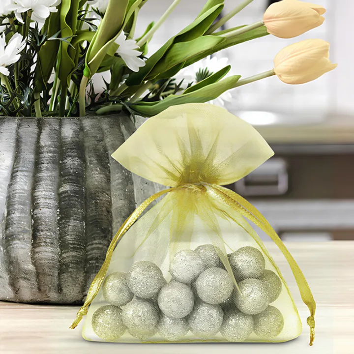 Cet ensemble est le choix parfait si vous cherchez un moyen de conserver une grande quantité de petites choses comme, par exemple, les pièces de monnaie ou boutons - les sachets organza de dimensions 9 cm x 12 cm sont idéals pour cela et en mettant des arômes agréables comme la lavande, vous créez des sacs originaux parfumés ou des sachets parfumés pour placard.