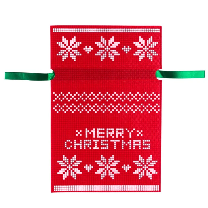 Avec leur design blanc évoquant les symboles festifs et un cordon vert brillant, ces sacs transforment l'emballage en véritable invitation à la célébration.