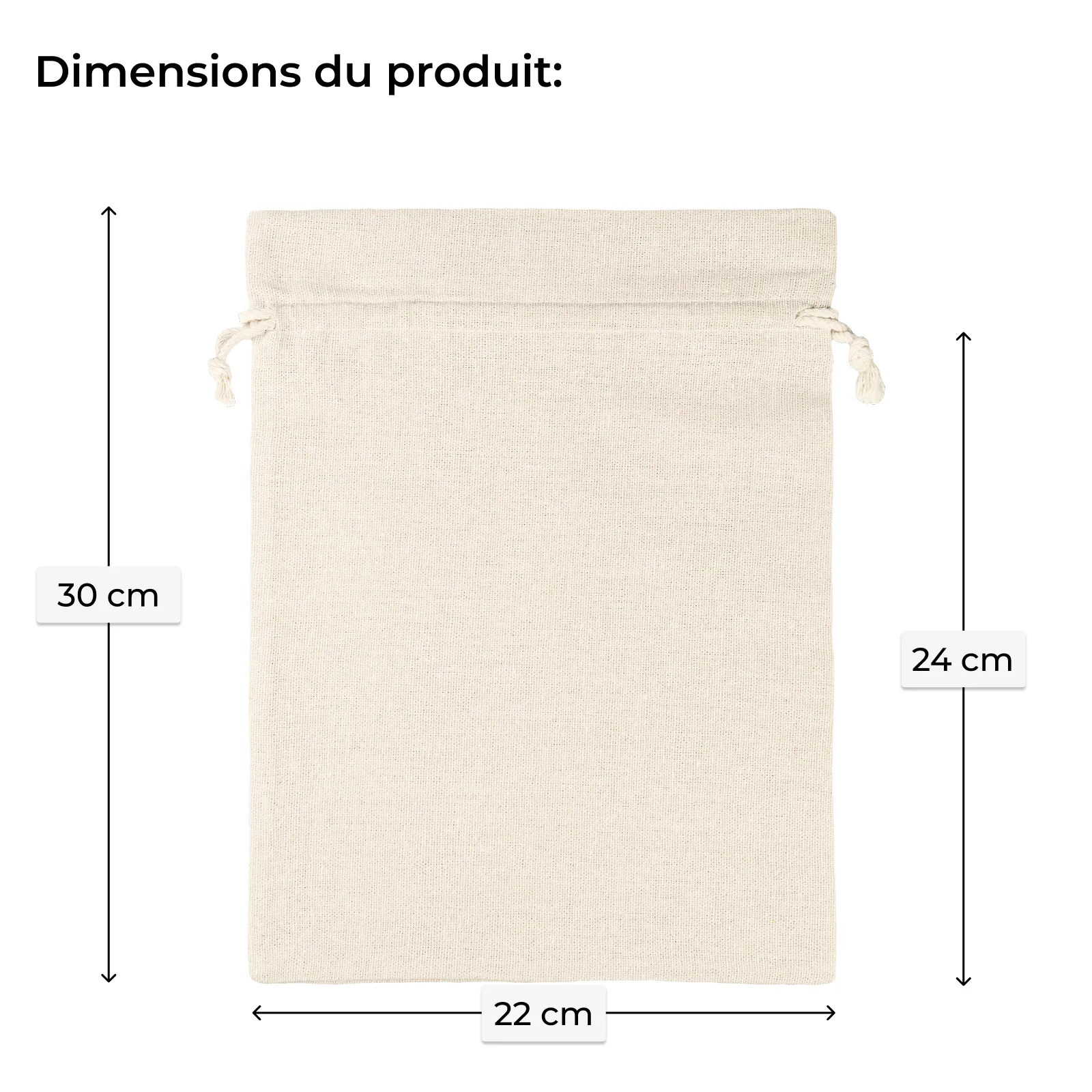 Découvrez les sacs en tissu résistants et pratiques couleur lin naturel. Les pochettes présentées dans cette offre ont la taille de 22 x 30 cm. L'emballage comprend un set de 3 pièces de sachets universels.
