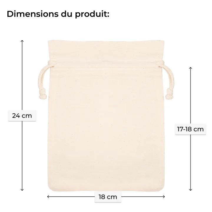 Nous proposons un lot de 5 sachets en coton, taille 18 x 24 cm. Ce lot pratique est disponible en couleur naturelle et vous servira longtemps.