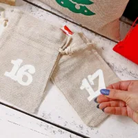 Calendrier de l'Avent, 24 pièces Pochettes en 100% coton 10 x 13 cm- naturelle