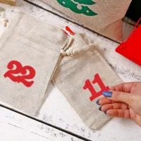 Calendrier de l'Avent, 24 pièces Pochettes en 100% coton 10 x 13 cm + accessoires de Noël