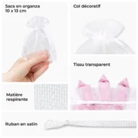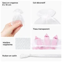 25 pièces Sacs en organza 8 x 10 cm - blanc