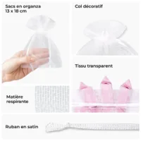 25 pièces Sacs en organza 9 x 12 cm - blanc