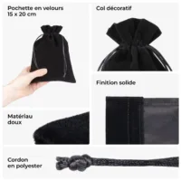 5 pièces Sacs en velours 15 x 20 cm - noir