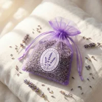 Pochons en tissu effet lin et organza avec broderie lavande - 10x13 cm, lot de 5 - élégance naturelle pour vos créations