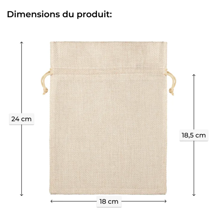 Ensemble de 5 pochettes de jute naturelle, dimensions: 18 cm x 24 cm.