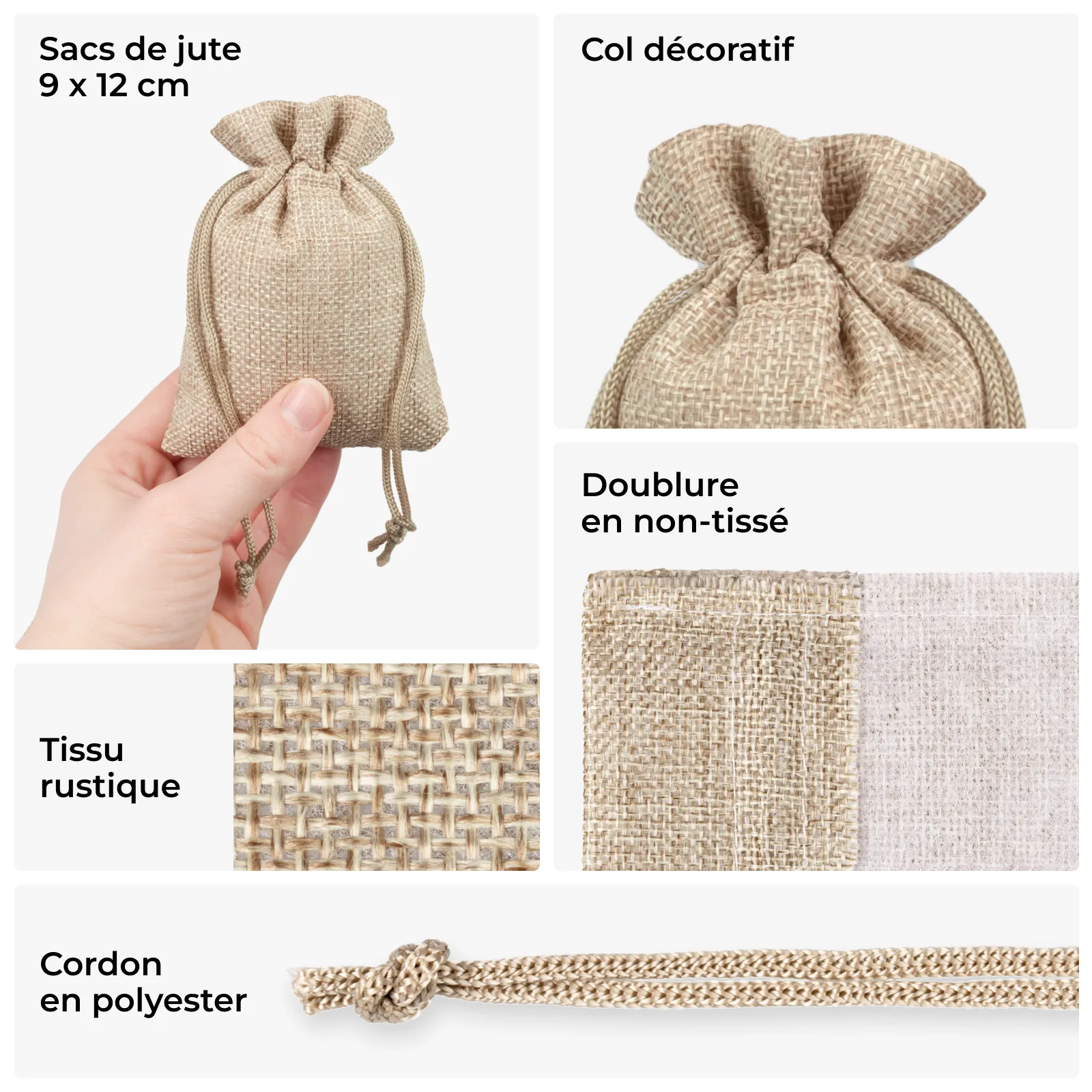 10 pièces Sacs de jute 9 x 12 cm - naturelle