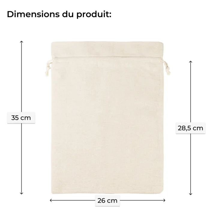 Découvrez les pochettes en tissu résistants et pratiques couleur lin naturel. Les pochettes présentées dans cette offre ont la taille de 26 x 35 cm. L'emballage comprend un set de 1 pièce de sachets universels.