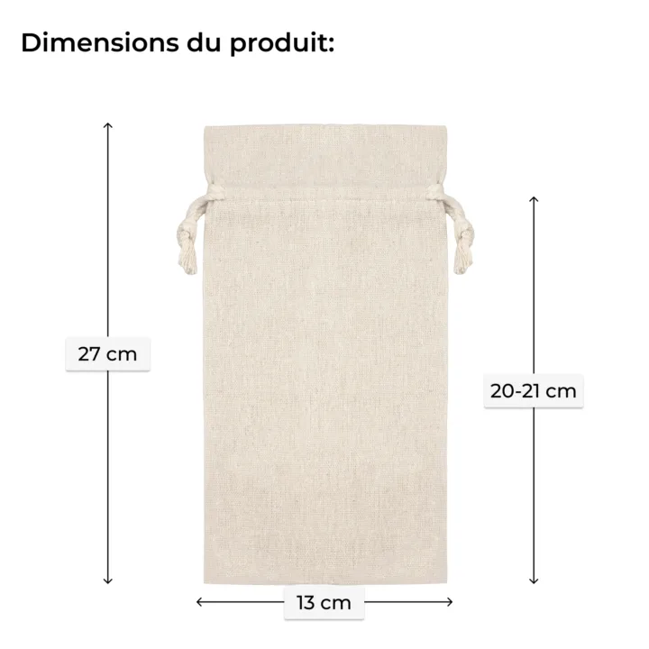 Ces pochettes ont été cousues de tissu en coton avec l'addition des fibres synthétiques, agréables au toucher et aérées. Ce tissu est très élégant - il reproduit la texture et la couleur du lin naturel. Son extraordinaire durabilité et sa haute résistance à l'abrasion et aux plis constituent un grand avantage. Ces emballages réutilisables sont un choix parfait !