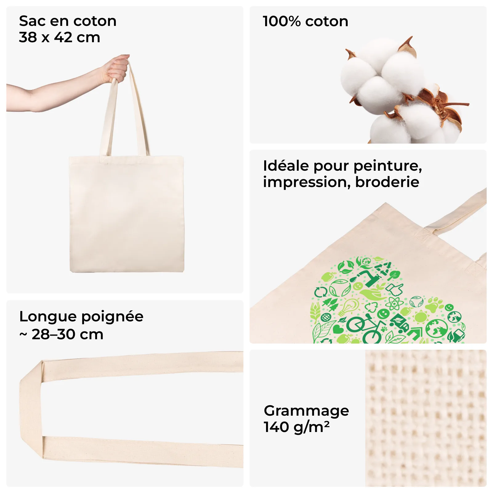 Sac en coton 38 x 42 cm avec des anses longues - naturelle DIY – lots créatifs