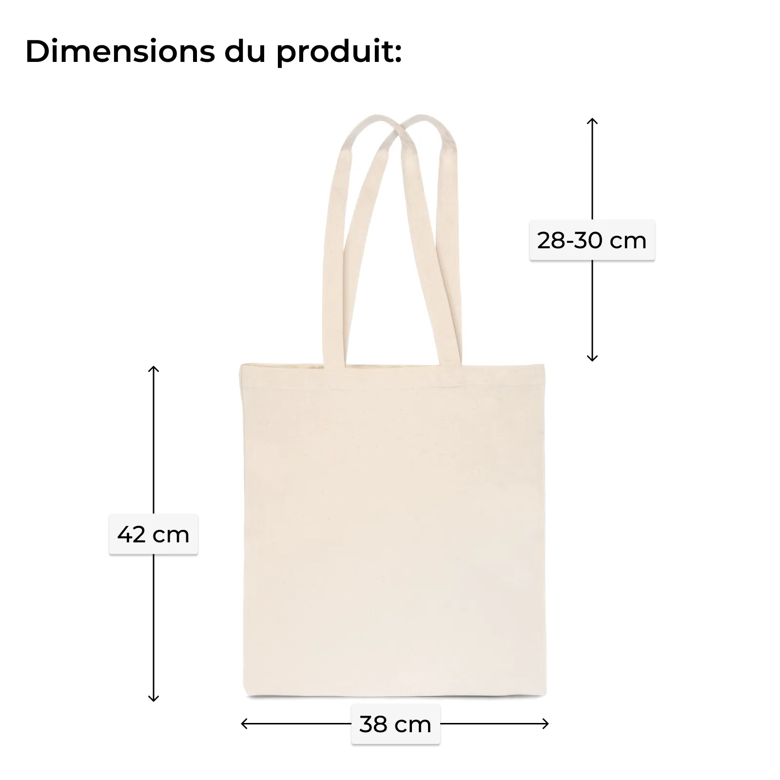 Le sac mesure 38 cm de large sur 42 cm de haut – assez spacieux pour vos courses quotidiennes et plus encore !