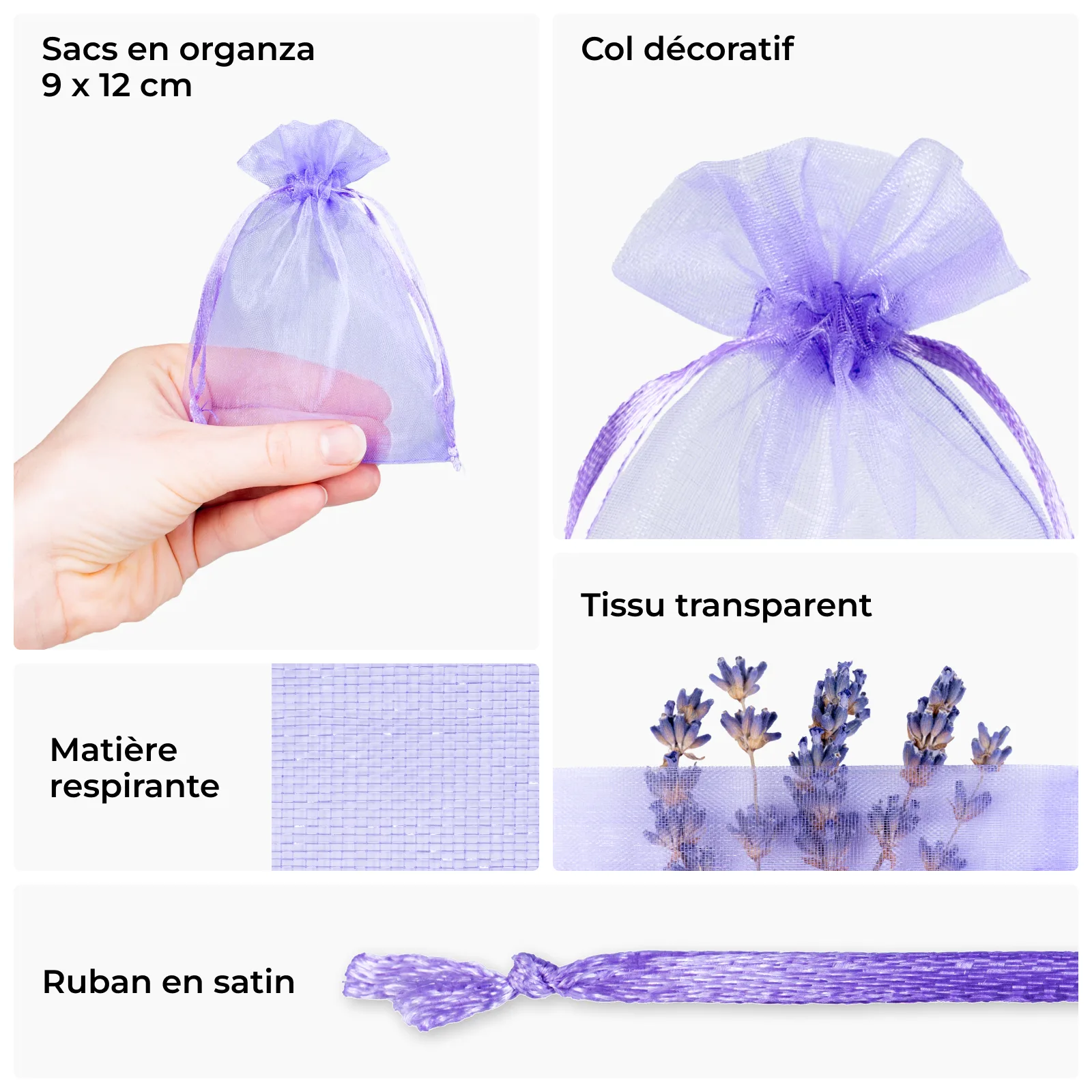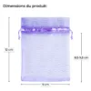 Les sachets en organza violets sont parfaits comme cadeaux d'invités pour mariages, baby showers ou anniversaires. À la maison, ils servent au rangement des bijoux ou à la création de sachets parfumés DIY pour armoires et commodes.
