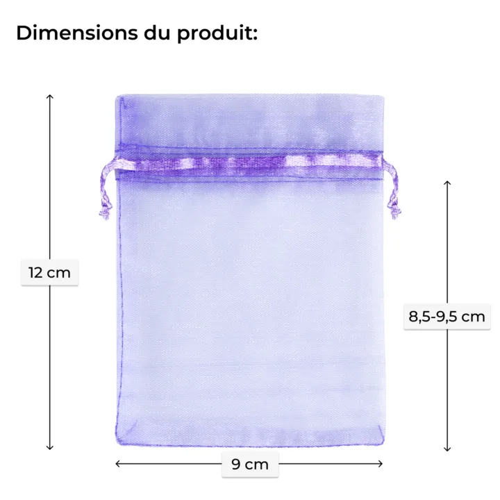 Sachets en organza 9 x 12 cm - lot de 25 violets, idéals pour vos petits trésors et objets