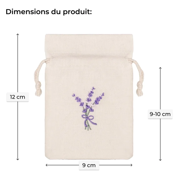 Sachets en tissu effet lin brodés de lavande - 9x12 cm, lot de 10 - charme naturel et raffiné