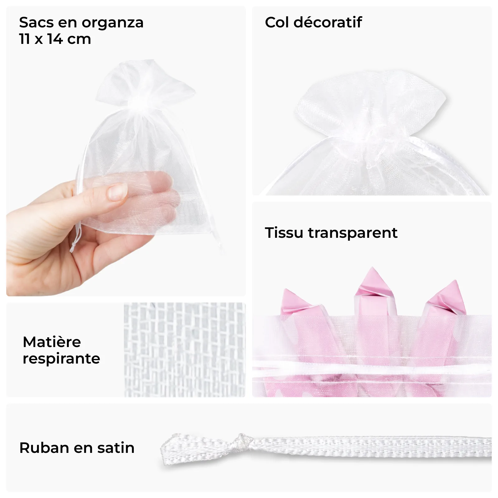 25 pièces Sacs en organza 11 x 14 cm - blanc