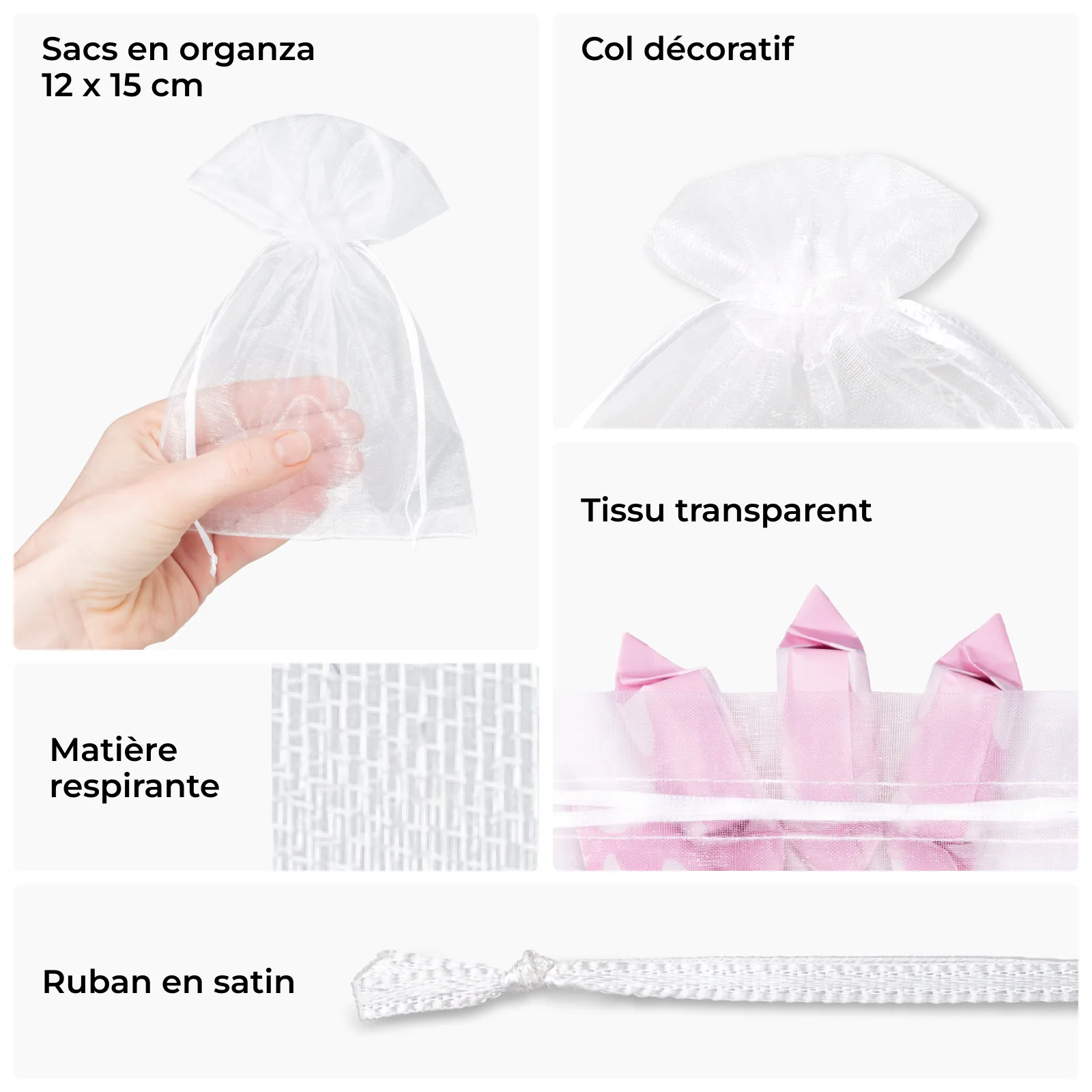 25 pièces Sacs en organza 12 x 15 cm - blanc