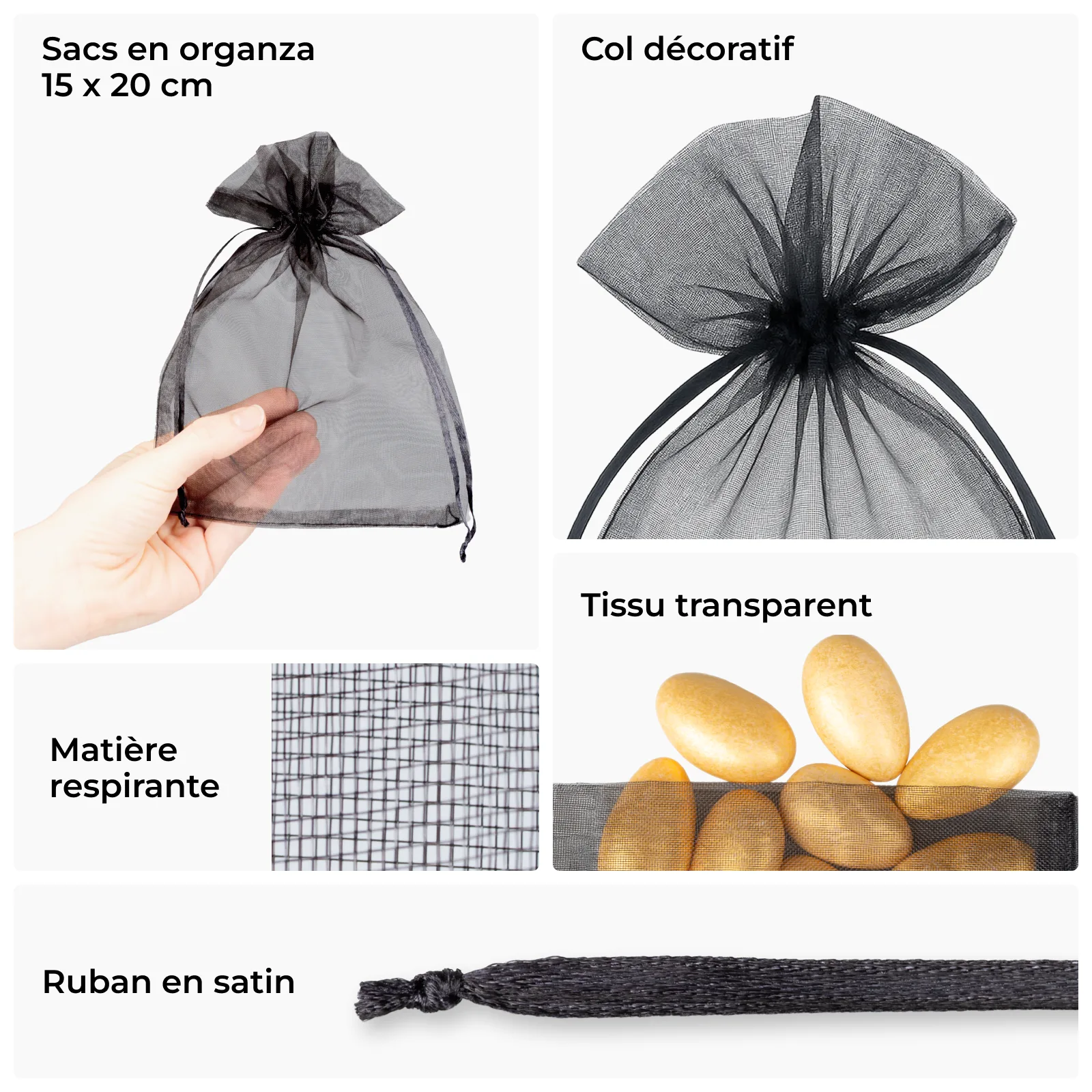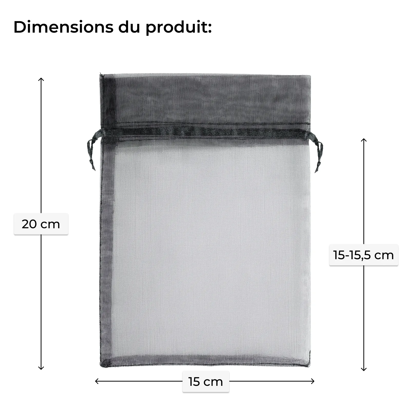 10 pièces Sacs en organza 15 x 20 cm - noir