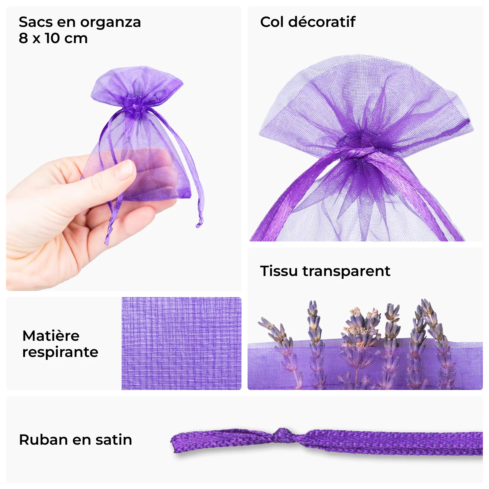 Les sacs en organza sont un produit polyvalent qui trouve son application dans diverses industries. Ils peuvent être utilisés comme emballage cadeau, pour des bijoux, des cosmétiques, mais aussi comme décorations de mariage et éléments de décoration intérieure. Nos sacs sont également populaires auprès des fabricants pour l'emballage de la lavande, des savons faits à la main, et des bijoux. Grâce à la possibilité de personnalisation, ces sacs deviennent un emballage unique adapté aux besoins individuels des clients.