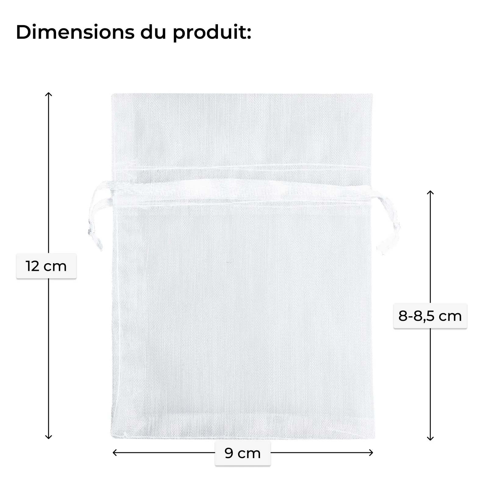 25 pièces Sacs en organza 9 x 12 cm - blanc