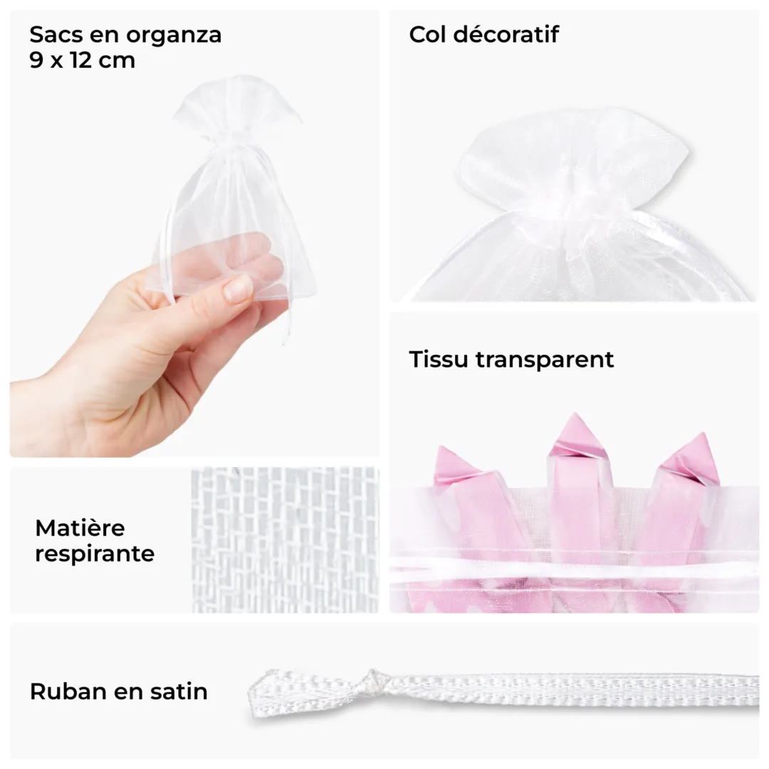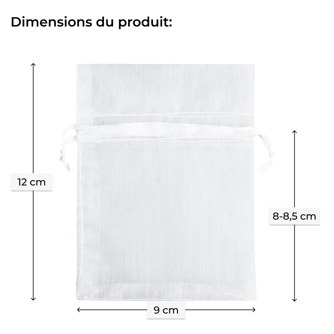 25 pièces Sacs en organza 9 x 12 cm - blanc