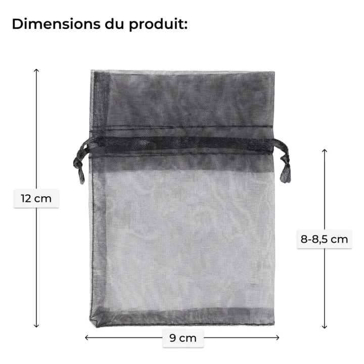 25 pièces Sacs en organza 9 x 12 cm - noir