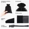 Nous vous offrons un ensemble de 5 pièces de sachets en velours de dimensions 15 x 20 cm. Cet ensemble pratique est disponible en couleur noire et pourra vous servir pendant une période plus longue.