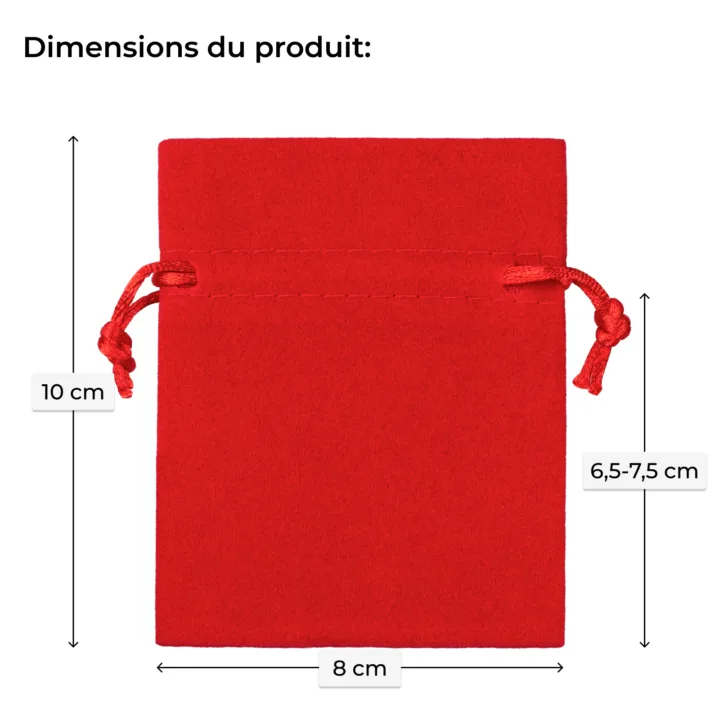 Nos sacs en velours rouge de taille 8x10 cm sont un excellent choix pour les entreprises à la recherche d'emballages élégants et fonctionnels. Fabriqués en velours de haute qualité, ils sont non seulement esthétiques, mais aussi très pratiques.