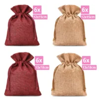 1 pc Calendrier de l'Avent en sacs de jute 12 x 15 cm et 13 x 18 cm bordeau et marron clair