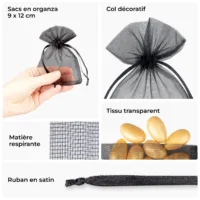 25 pièces Sacs en organza 9 x 12 cm - noir